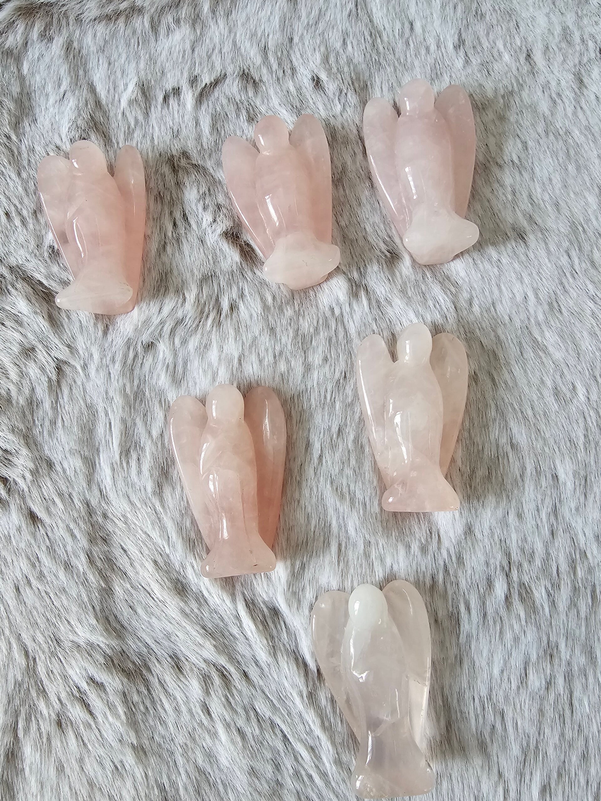 Deze liefdevolle rozenkwarts engel van ongeveer 4cm hoog is een symbool van bescherming, liefde en troot. Met zorg uit edelsteen gesneden, straalt hij een zachte en warme energie uit die perfect past in elke ruimte of edelstenencollectie.